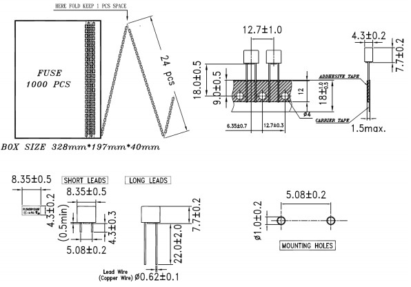 UL VDE CSA Ammo Pack Radial Leaded Black Thermoplastic Fast Blow Micro Fuse MSF 005 F5A 250V 8.35x7.7mm Images |